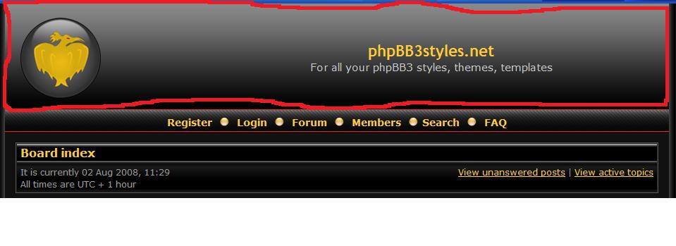 At the moment the whole site is E107 including the forums located at ***.ukmarinecore.com . I would like to change the forums to phpbb3 as I really love using it. I have a problem, I really need to change the logo thats at the top of the page on the black pearl style, I have high lighted in red on the attached picture what I`m trying to do, I would like to be able to fill that whole area with one picture. Is this possible ? sorry if im asking a question in the wrong place I`m very new to this any help would be greatfully recieved. I`m really hoping someone can solve this problem for me as I would love to use this template and this site to learn more about phpbb3