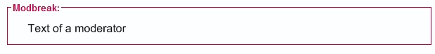 * Modbreak: a text of a moderator highlighted just like in the image and an user cannot edit his post after a mod did that. (this function is in phpbb3 i believe also)