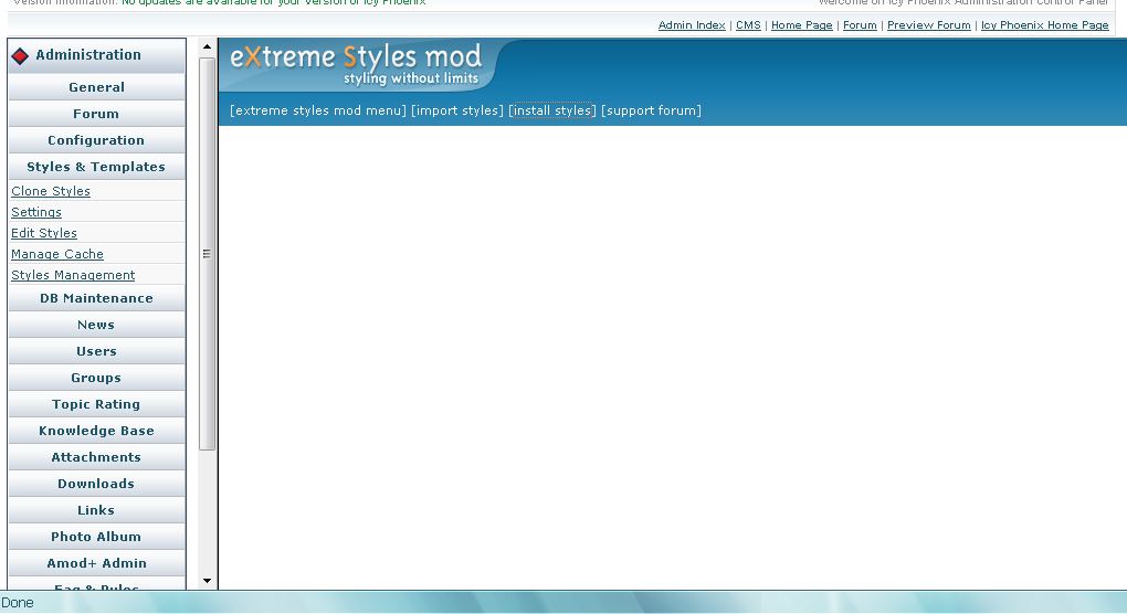 1. I can't install styles, When I go in the ACP>Styles>Install that page is just blank, I've tried replacing the files too, didn't work.