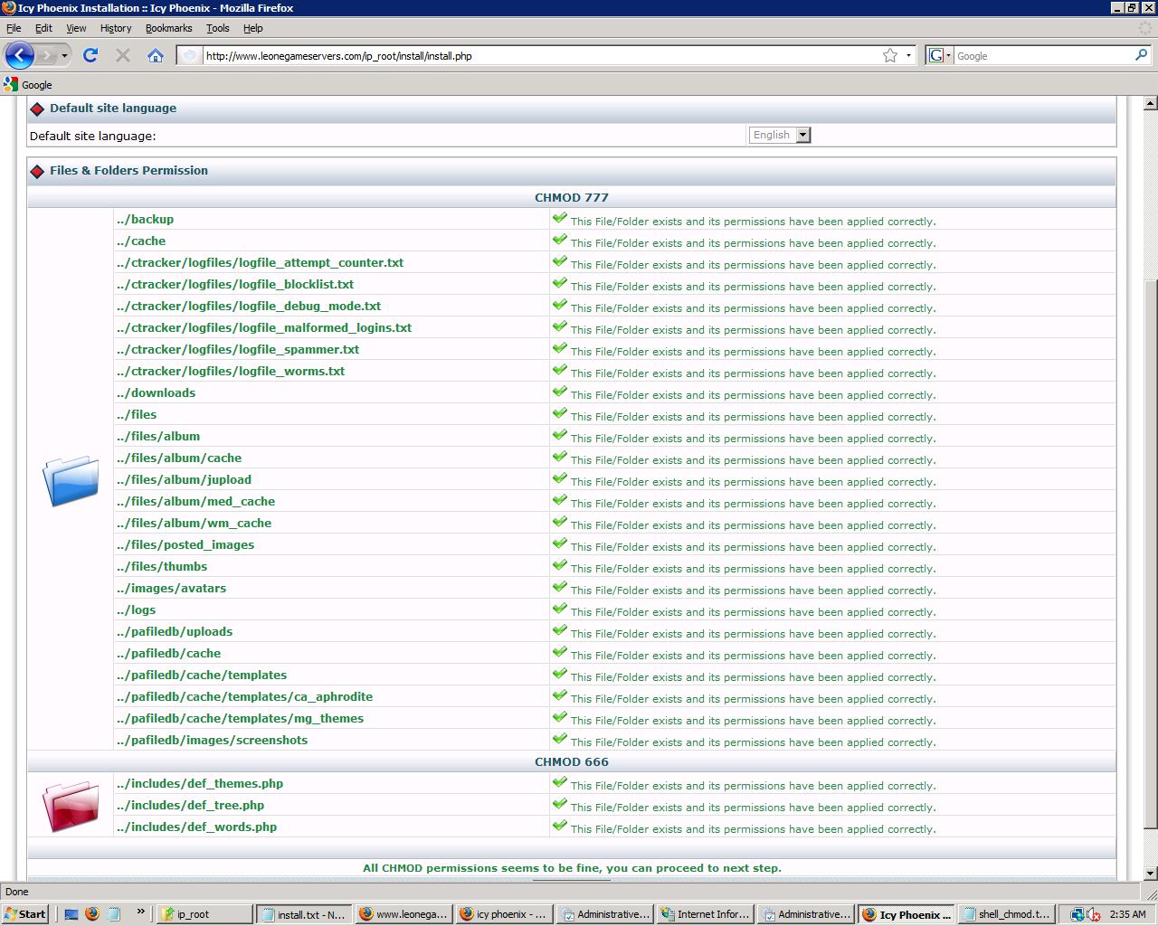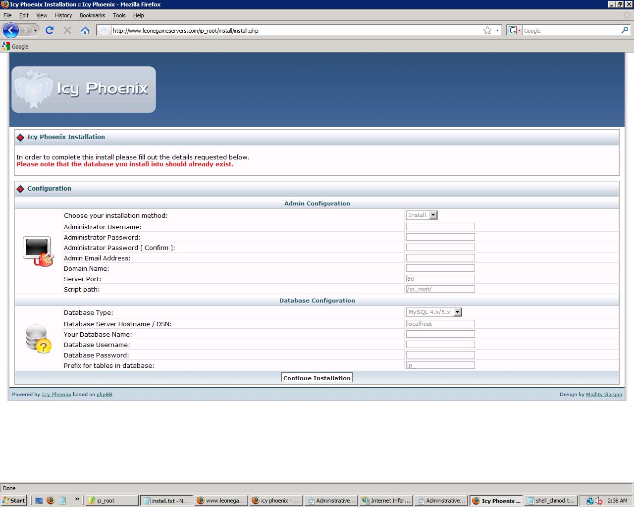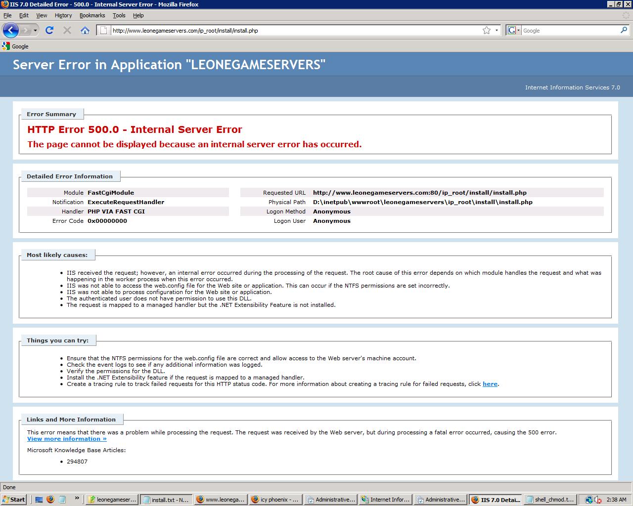 I am trying to get this board installed and am having alot of trouble. I get all the way up to when you click continue installation, the page hangs for like 1 minute and then I get the internal server error msg. The tables are being written to the database correctly, but when I click ok it is having an issue. I can also confirm that the database settings are not being written to config.php.