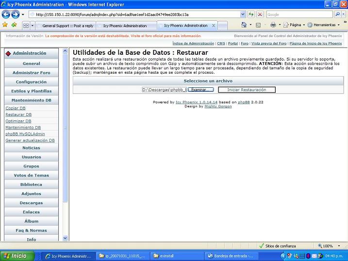 http://150.150.1.22:8090/forum and the MySQL DB is in 150.150.1.22
